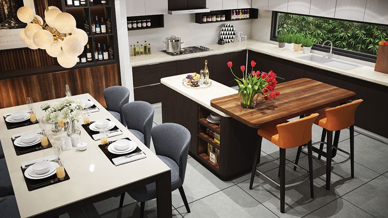 Những bài trí ở khu vực này cần đảm bảo yếu tố tiện nghi, vui vẻ và ít xáo trộn đến không gian sinh hoạt riêng tư của mỗi người. Tôi muốn căn bếp của gia đình phải tạo cho mỗi thành viên cảm giác thoải mái, dễ chịu, thoáng đãng và năng động nhất.
