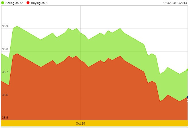 Sang ngày hôm nay, 24/10, vàng được giao dịch gần mức thấp nhất trong vòng 1 tuần khi các nhà đầu tư đánh giá các dấu hiệu hồi phục của kinh tế Mỹ cao hơn triển vọng trì hoãn tăng lãi suất.