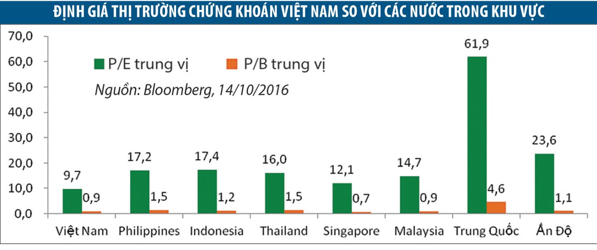 Cuối cùng, thị trường cổ phiếu Việt Nam đang là một trong những thị trường rẻ nhất trong khu vực như chúng ta có thể thấy rõ trên biểu đồ dưới đây.