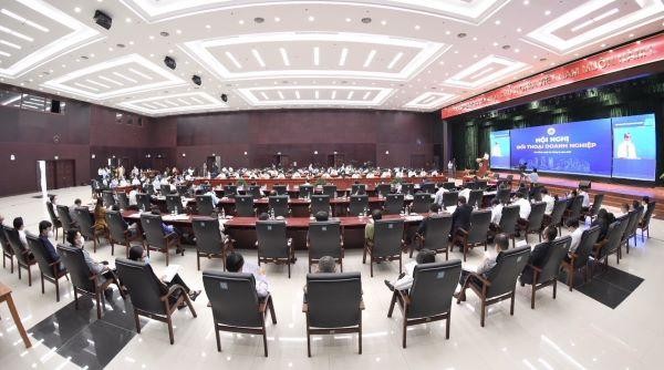 Đối thoại có sự tham gia của 150 đại diện doanh nghiệp trực tiếp tại Hội trường và 350 doanh nghiệp gián tiếp bằng hình thức trực tuyến |