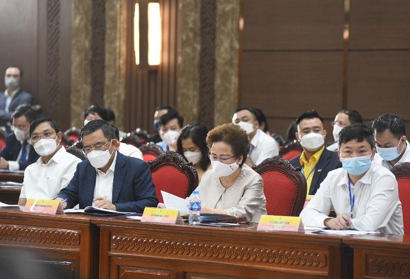 “Đồng hành và chia sẻ trước những khó khăn của doanh nghiệp; với phương châm sức khỏe của doanh nghiệp là sức khỏe của nền kinh tế; chính quyền Thành phố đã và đang nỗ lực hết mình, thực hiện đồng bộ các biện pháp để kiểm soát dịch bệnh sớm nhất và nhanh nhất; tập trung tháo gỡ khó khăn, hỗ trợ doanh nghiệp vượt qua khó khăn để duy trì và phục hồi sản xuất kinh doanh, giảm thiểu tác động tiêu cực từ đại dịch Covid 19”, Bí thư Thành ủy Hà Nội Đinh Tiến Dũng nói.