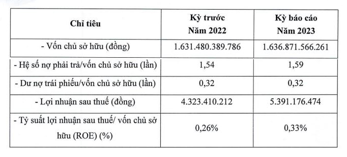 Lợi nhuận sau thuế của BIDGROUP vỏn vẹn 5,4 tỷ đồng. Tỷ suất lợi nhuận sau thuế/vốn chủ sở hữu (ROE) 2023 chỉ đạt được ở con số khiêm tốn 0,33%, tăng 0,07% so với cùng kỳ năm trước.