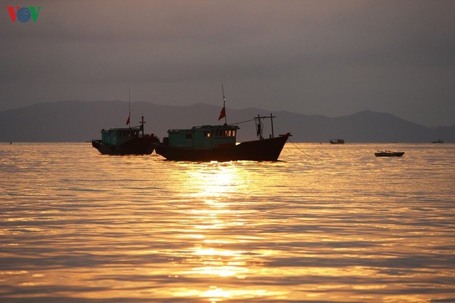 Mặt trời đỏ ối từ từ lặn xuống sau những dãy núi xanh thẫm cuối đường chân trời, hắt xuống mặt biển ánh vàng lấp lánh.