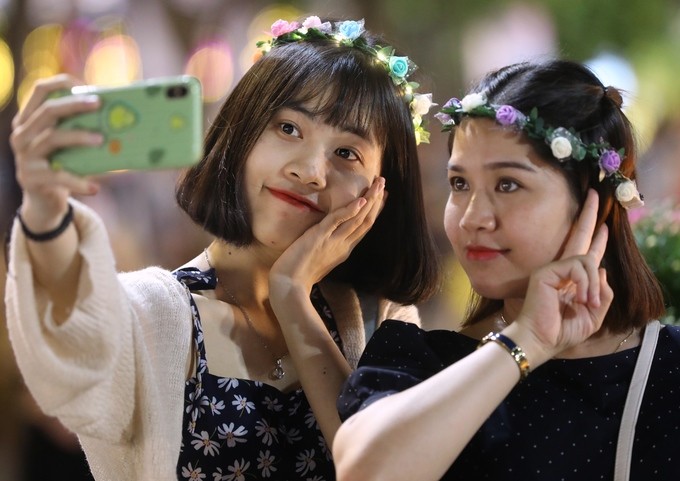 "Đây là năm thứ ba liên tiếp em đến đường hoa Nguyễn Huệ. Mỗi năm là một kỷ niệm đánh nhớ, nhiều tiểu cảnh hoa và hình ảnh chuột rất đáng yêu", bạn Thanh Hà, ở huyện Củ Chi (trái), cho biết.