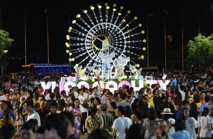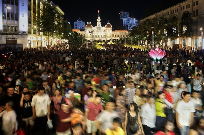 Hơn 22h, đường hoa vẫn rất đông người dân, du khách tới vãn cảnh.Đường hoa Nguyễn Huệ mở cửa đến 21h ngày 28/1/2020 (tức mùng 4 Tết).