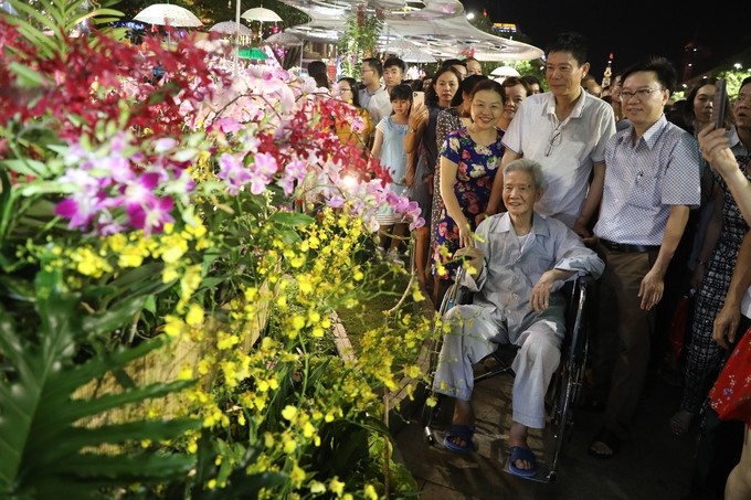 Cụ Trịnh Đình Công (93 tuổi, ở quận 3) được các con đưa đi đường hoa tham quan. "Đường hoa năm nay rất đẹp, bố trí lạ mắt. Năm nay, tôi 75 năm tuổi Đảng rồi, rất vui vì đất nước đổi mới từng ngày", cụ Công nói.