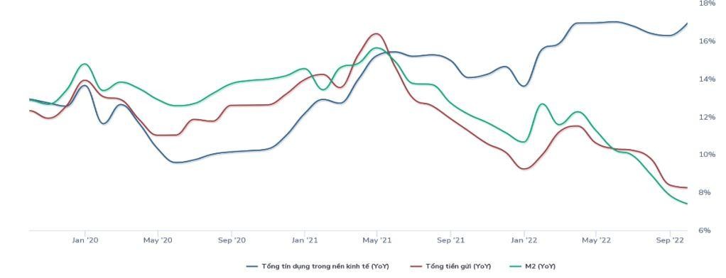 Một tâm điểm chính mà quỹ dành nhiều sự chú ý hơn trong giai đoạn này là một năm qua, hệ thống ngân hàng đẩy nhanh tín dụng trong khi cung tiền (M2) hạn chế đã khiến khoảng cách giữa dư nợ tín dụng và vốn huy động (LDR) bị đẩy lên mức cao, gây căng thẳng thanh khoản và kích hoạt cuộc đua lãi suất. Chỉ khi LDR quay trở lại mức trần quy định của NHNN, các ngân hàng mới dừng cuộc chạy đua tăng lãi suất hiện nay và xác lập đỉnh lãi suất huy động cũng như cho vay.