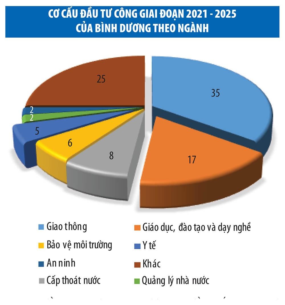 Cụ thể, Bình Dương ưu tiên bố trí vốn cho các công trình trọng điểm, mang tính động lực, liên kết vùng. Đặc biệt, hệ thống hạ tầng giao thông được ưu tiên đầu tư trước, mang tính khơi thông và dẫn dắt các dòng vốn ngoài nhà nước khác. Ưu tiên kế tiếp là đầu tư hoàn thiện hệ thống y tế tuyến tỉnh, huyện và các công trình giáo dục nhằm đảm bảo an sinh xã hội, nâng cao đời sống người dân.