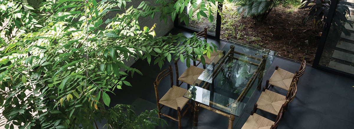 Các khu vực như phòng bếp, nhà tắm, cầu thang và hành lang được bố trí về phía tây để tránh bức xạ nhiệt. Bên cạnh đó, việc sắp xếp các khối nhà đa dạng duy trì được sự lưu thông không khí. Cũng nhờ vậy, khi các căn nhà xung quanh được xây dựng, không gian xanh trong nhà vẫn có thể được duy trì. Bên cạnh đó, lối thiết kế này giúp căn nhà luôn mát mẻ ngay cả trong khí hậu nhiệt đới. Rất ít khi phải sử dụng hệ thống điều hòa.