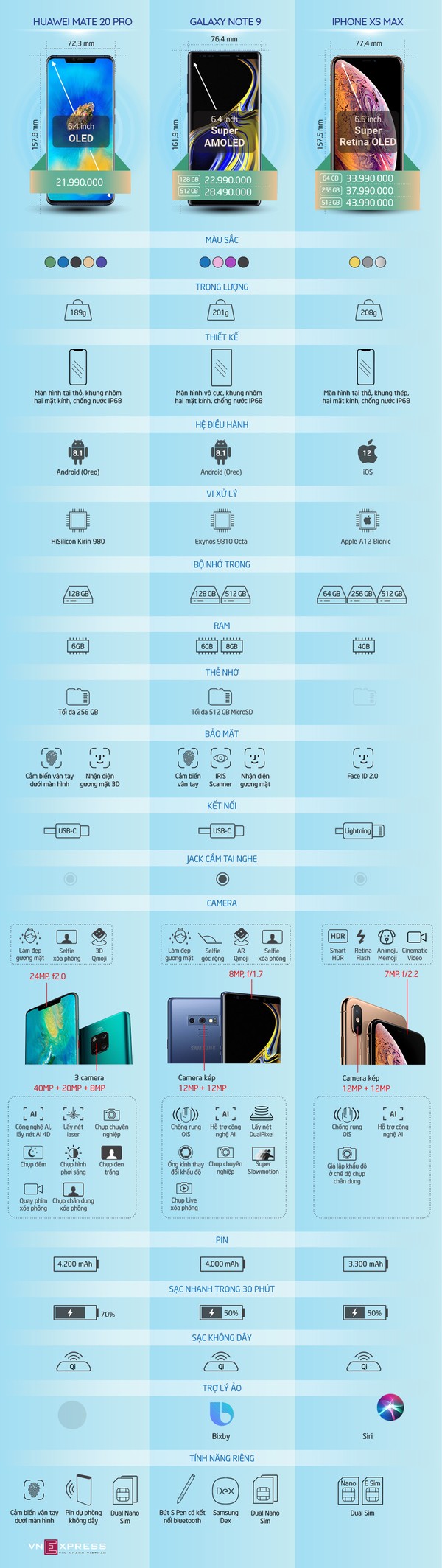 Theo Vnexpress Tin liên quan Mở hộp Galaxy Note 9: Mẫu smartphone đắt nhất thị trường di động 17/08/2018 11:46 Tại sao giá bán iPhone ngày càng đắt đỏ? 28/09/2018 17:10 Samsung sắp ra smartphone với bốn camera sau 03/09/2018 09:09 Smartphone có thể gập được của Samsung sắp ra mắt vào tháng tới? 24/10/2018 09:15 Từ khóa Huawei Mate 20 Pro Galaxy Note 9 iPhone Xs Max