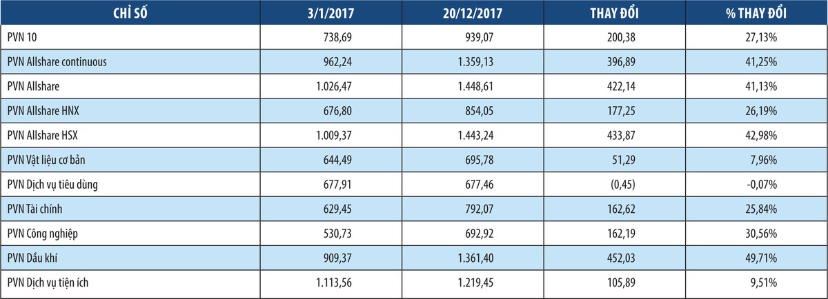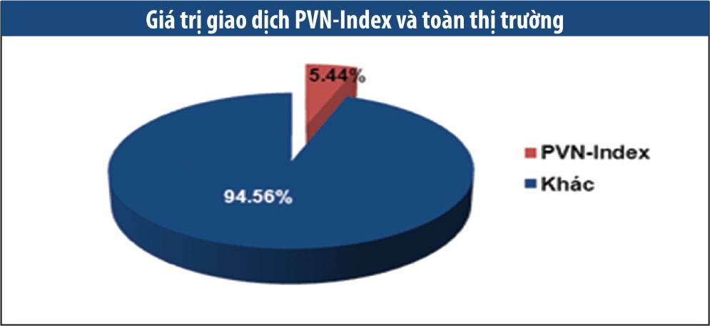 Tính từ đầu năm, tổng giá trị giao dịch của các cổ phiếu trong PVN-Index đạt 52.768 tỷ đồng, chiếm 5,44% toàn thị trường, trong đó tổng giá trị giao dịch của 10 mã lớn nhất thuộc PVN10 đạt 41.619 tỷ đồng, chiếm 4,29% toàn thị trường.