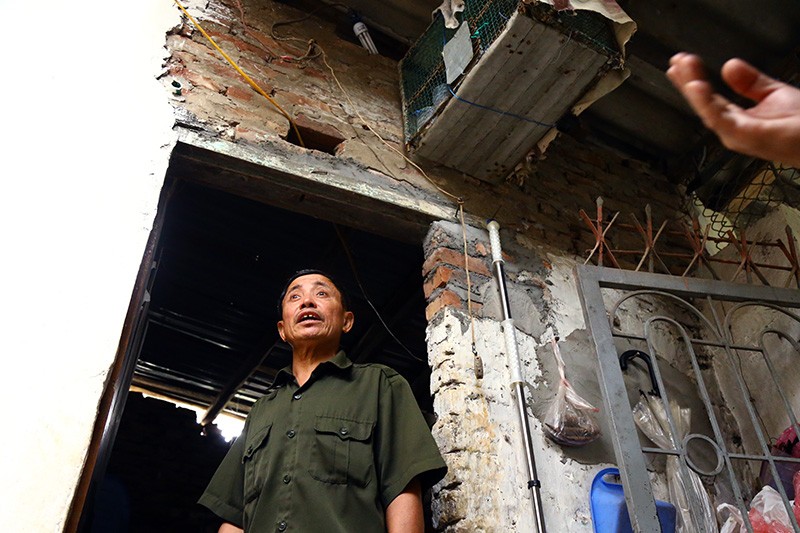 Căn nhà của bà Dần gần như đã sụp đổ hoàn toàn. Hàng xóm cho biết chủ hộ không phải không có tiền đầu tư sữa chữa mà do vì không được cải tạo nâng cấp do nằm trong đất dự án