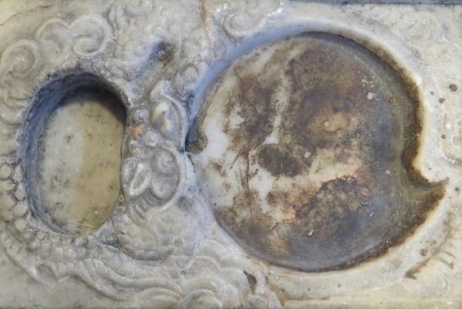 Chiếc nghiên mực làm bằng đá đen, không có họa tiết nào đặc biệt, anh Thiện Gia cho rằng, người sử dụng nó thuộc tầng lớp bình dân.