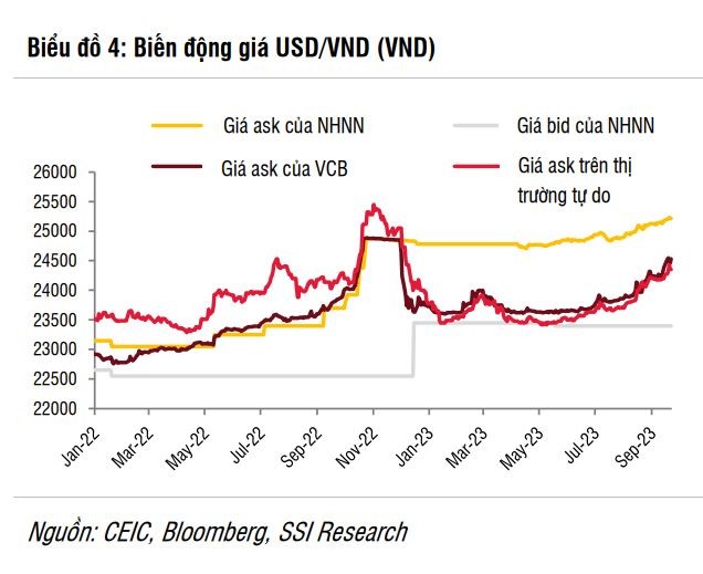 Bà Thái Thị Việt Trinh, Chuyên viên phân tích Cao cấp SSI cho rằng, áp lực tỷ giá đang được nhìn nhận là một trong những nguyên nhân chính khiến NHNN phát hành tín phiếu trong cả hai giai đoạn tháng 6/2022 và tháng 9/2023. Công cụ chính sách tiền tệ này được thực hiện nhằm điều tiết bớt một lượng thanh khoản trong hệ thống trong ngắn hạn - là một phần trong nỗ lực nhằm giảm mức chênh lệch lãi suất VND và USD và từ đó hạn chế các hoạt động đầu cơ trên thị trường.