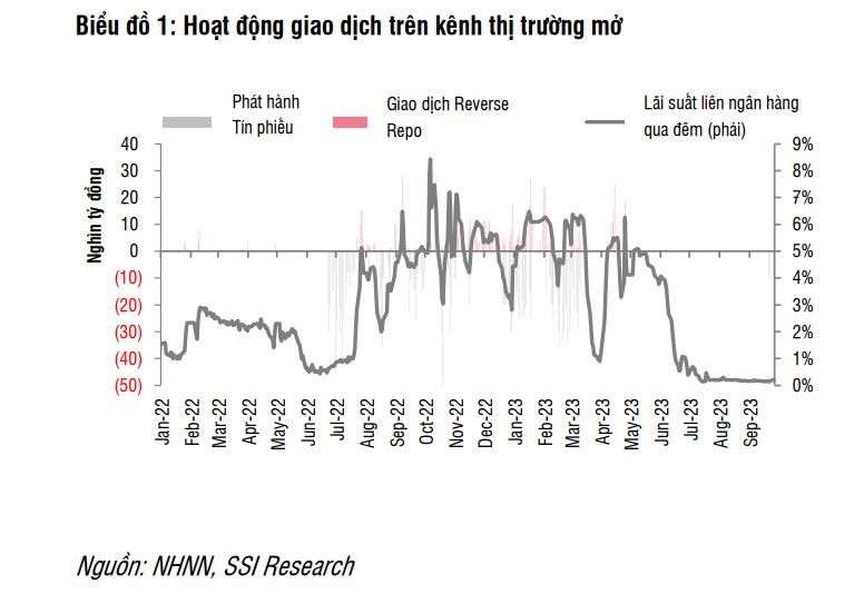 Trong năm 2023, NHNN đã quay lại phát hành tín phiếu trên kênh hoạt động thị trường mở kể từ tháng 3 năm 2023. Thực tế cho thấy, khối lượng này vẫn chưa có quá nhiều sự đột biến và vẫn trong tầm kiểm soát nếu so với mức thanh khoản trung bình hàng ngày trên thị trường liên ngân hàng là vào khoảng 200.000 tỷ đồng/phiên.