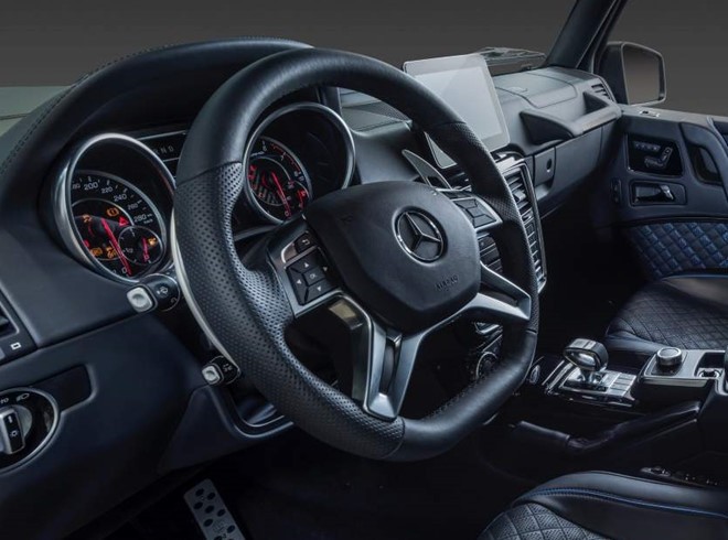Ghế trước chỉnh điện, vô-lăng đáy phẳng thể thao, tích hợp lẫy chuyển số bằng nhôm Brabus Race.