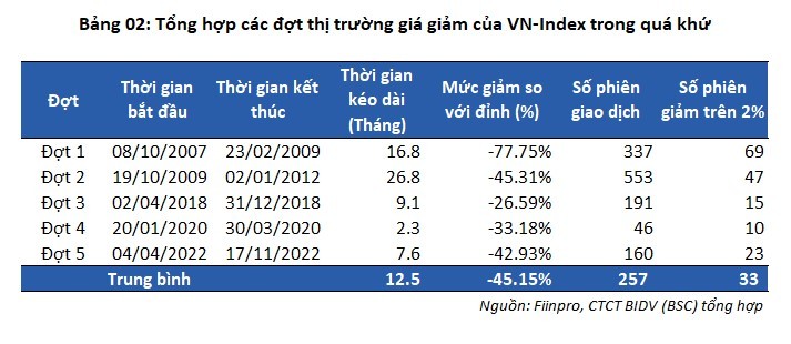 "Thời gian xác lập đáy của một thị trường giá giảm đang co hẹp lại tuy nhiên mức độ sụt giảm và số phiên VN-Index giảm hơn 2% lại có xu hướng gia tăng", báo cáo BSC nhận định.
