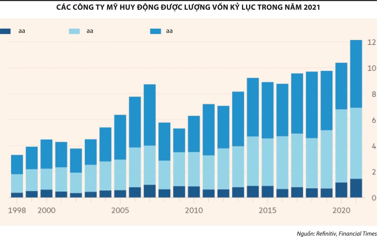 Thực tế thì 2021 là một năm huy động vốn kỷ lục của các công ty trên thị trường chứng khoán Mỹ, bao gồm trái phiếu, cổ phiếu, vay nợ hợp vốn nói chung. Với tổng vốn huy động được trên 12.100 tỷ USD trong năm 2021, các công ty Mỹ nắm trong tay một lượng tiền khổng lồ. Kết quả là “một lượng lớn các công ty đang giành giật các cơ hội M&A” - Brad Miller, lãnh đạo bộ phận thị trường vốn cổ phần của khu vực châu Mỹ thuộc Ngân hàng UBS cho biết. Và một số lượng lớn các công ty khác thì đang đi mua lại cổ phiếu và giảm nợ. Khi nào làn sóng mua lại cổ phiếu và M&A còn sôi động, thị trường chứng khoán Mỹ sẽ còn nhiều động lực đi lên, bất chấp mức định giá đã cao ngất ngưởng.