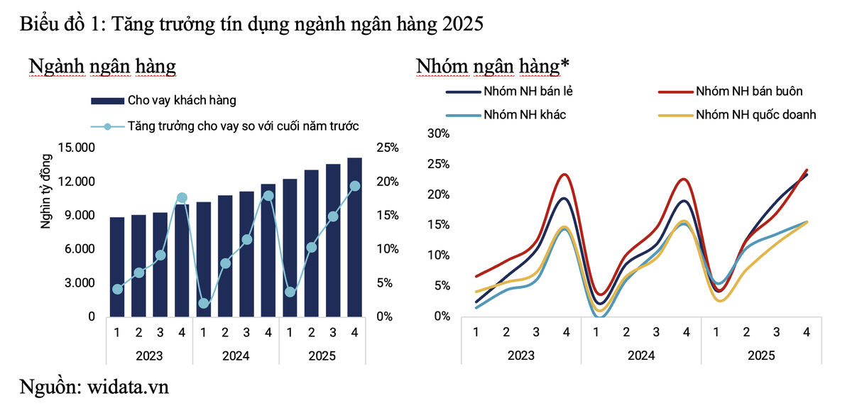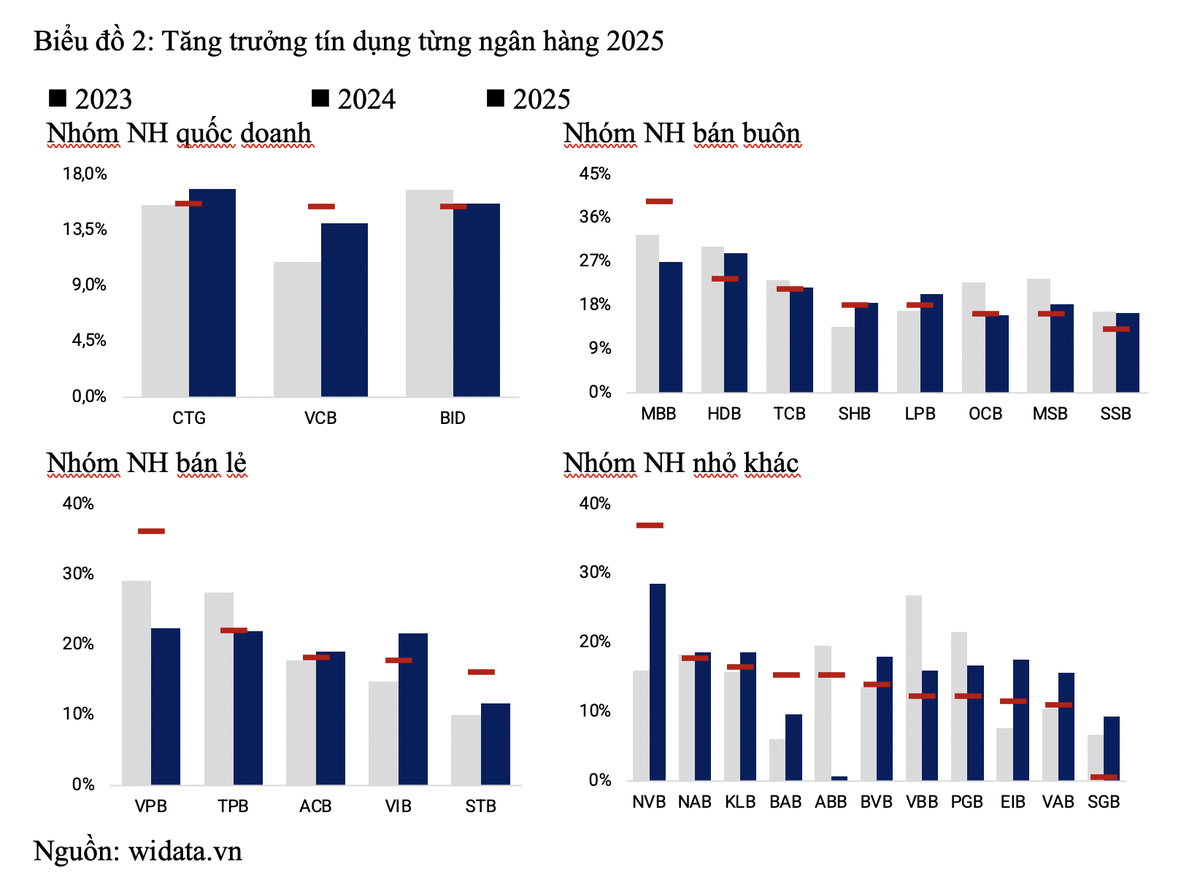 Bức tranh tăng trưởng tín dụng toàn ngành và sự phân hóa theo nhóm ngân hàng
