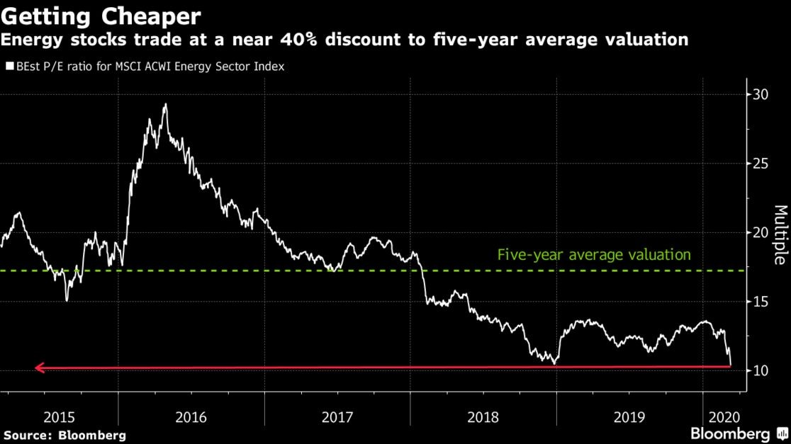Trong khi đó, chỉ số MSCI ACWI Engergy Sector đang ở mức thấp nhất kể từ năm 2013 với PE ước tính giảm gần 40% so với mức trung bình 5 năm.