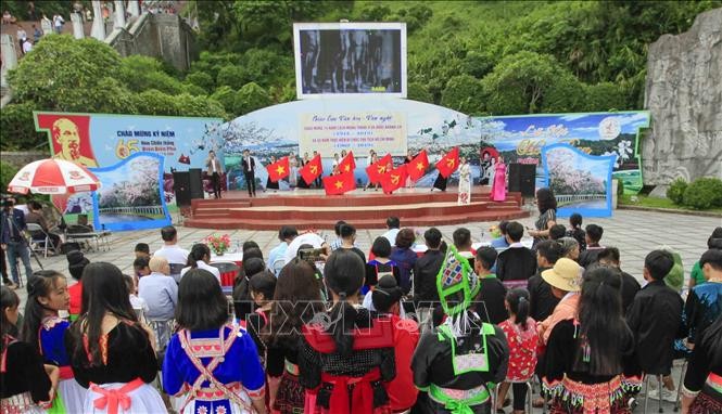 Biểu diễn nghệ thuật mừng Quốc khánh tại Điện Biên. Ảnh: TTXVN