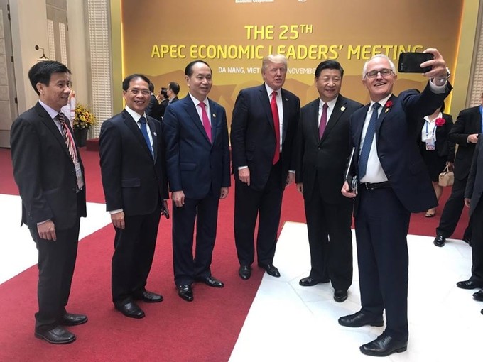 Thủ tướng Australia Malcolm Turnbull chụp ảnh với Chủ tịch nước Trần Đại Quang, Tổng thống Mỹ Donald Trump và Chủ tịch Trung Quốc Tập Cận Bình