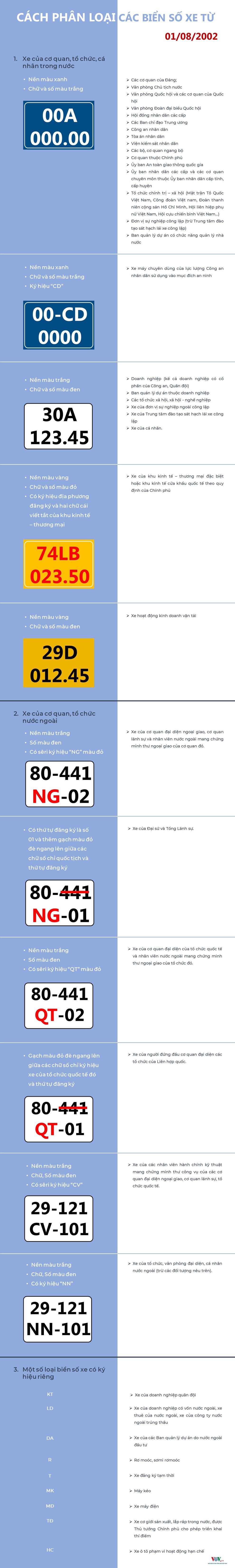 Theo VOV Tin liên quan Xe dán bản đồ Việt Nam thiếu Hoàng Sa, Trường Sa sẽ bị xử nghiêm 13/07/2020 10:57 Lưu ý tác động hai chiều khi thực hiện những quy định mới về đăng ký xe 15/07/2020 17:39 Sắp cấp biển ô tô theo sở thích, trả giá cao “trúng” số đẹp 23/04/2020 07:04 Những loại xe ô tô phải chuyển sang biển màu vàng từ 1/8 08/07/2020 10:36 Từ khóa biển số xe Bộ Công an