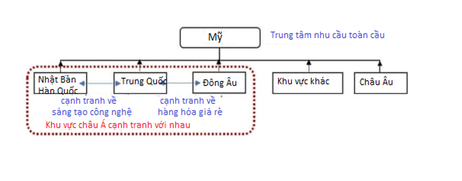 Các tác giả đã sử dụng hai biểu đồ. Biểu đồ đầu tiên cho thấy một nền kinh tế quốc tế tập trung vào Mỹ như một trung tâm nhu cầu toàn cầu.