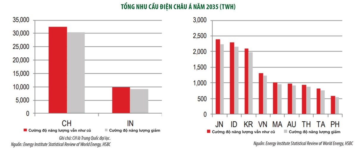 Điện tái tạo nắm giữ chìa khóa cho quá trình chuyển đổi năng lượng sạch của châu Á. Theo ước tính của BP (tập đoàn năng lượng Anh) và Cơ quan Năng lượng Quốc tế (IEA), điện sẽ chiếm từ 45% đến 50% mức tiêu thụ năng lượng cuối cùng nếu châu Á đạt phát thải ròng bằng “0“.