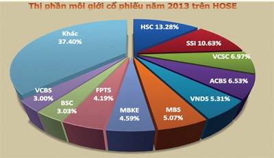 | Những con số nổi bật 2013 2.543.584 tỷ đồng là tổng sản phẩm trong nước (GDP) năm 2013 tính theo giá so sánh năm 2010, tăng 5,42% so với năm 2012. Mức tăng trưởng GDP thấp hơn mục tiêu tăng 5,5% đề ra, nhưng cao hơn mức tăng 5,25% của năm 2012. 1.091.100 tỷ đồng là tổng vốn đầu tư toàn xã hội thực hiện trong năm 2013, tăng 8% so với năm 2012 và bằng 30,4% GDP. 195.400 tỷ đồng là tổng mức bội chi ngân sách trong năm 2013, bằng 5,3% GDP, vượt mức 4,8% đã dự toán. 6,6% là mức tăng CPI năm 2013, thấp hơn nhiều so với mức tăng 9,21% của năm 2012 và nằm trong ngưỡng dưới 7% mà Quốc hội đặt ra. 12,51% là mức tăng trưởng tín dụng năm 2013. Con số này gây bất ngờ, bởi con số tăng trưởng tín dụng đến ngày 12/12/2013 mới chỉ đạt 8,83%, trong khi kế hoạch là 12%. 21,89% là mức tăng của VN-Index trong năm 2013, từ 413,73 điểm, lên 504,63 điểm. Trong khi đó, HNX-Index cũng có mức tăng 18,83%, từ lên 67,84 điểm. 948.976 tỷ đồng là giá trị vốn hóa thị trường chứng khoán Việt Nam tính đến cuối năm 2013, bằng 37,31% GDP. 326 triệu USD, tương đương 6.842,9 tỷ đồng là số tiền mà nhà đầu tư nước ngoài đã mua ròng trên thị trường chứng khoán niêm yết Việt Nam trong năm 2013. 676 là số cổ phiếu đang niêm yết trên 2 sàn tính đến cuối năm 2013. Ngoài ra, có 2 chứng chỉ quỹ còn niêm yết, cùng 143 cổ phiếu đăng ký giao dịch trên UPCoM. 30.000 tỷ đồng là gói hỗ trợ tín dụng nhà ở được triển khai trong năm 2013, với lãi suất 6%/năm, sang năm 2014, lãi suất được giảm xuống còn 5%/năm. Tuy nhiên, do còn nhiều vướng mắc, nên gói hỗ trợ này chỉ được giải ngân nhỏ giọt và chưa phát huy được hiệu quả như mong muốn. 62,6% là tổng thị phần môi giới chứng khoán trên HOSE trong năm 2013 thuộc về 10 công ty chứng khoán có thị phần lớn nhất, hơn 90 công ty còn lại phải chia nhau 37,4% thị phần còn lại. Trên HNX, Top 10 dù chiếm ít hơn, nhưng cũng chiếm tới 55,4% thị phần. 1.372 tỷ đồng là giá trị giao dịch bình quân/phiên trong năm 2013 của cổ phiếu và chứng chỉ quỹ, tăng 5,23% so với năm 2012. Khối lượng giao dịch bình quân/phiên trong năm 2013 là 106,6 triệu đơn vị. 203.951 tỷ đồng là tổng giá trị huy động vốn trái phiếu chính phủ năm 2013, tăng 30,73% so với năm 2012. 76.955 là số doanh nghiệp đăng ký thành lập mới trong năm 2013, tăng 10,1% so với năm 2012, với tổng vốn đăng ký 398.700 tỷ đồng, giảm 14,7%. Tuy nhiên, có 60.737 doanh nghiệp giải thể hoặc ngừng hoạt động trong năm 2013, tăng 11,9% so với năm 2012. |