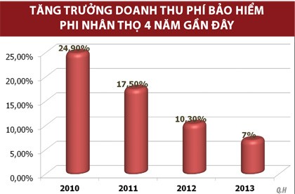 Nếu như các năm 2010, 2011, 2012, tốc độ tăng trưởng của thị trường bảo hiểm phi nhân thọ tương ứng là 24,9%; 17,5%; 10,3% thì đến năm 2013, tốc độ tăng trưởng đã suy giảm rõ rệt, chỉ còn 7%. Theo Chủ tịch Hiệp hội bảo hiểm Việt Nam, ông Trịnh Quang Tuyến, ngoài yếu tố giảm sút về nhu cầu bảo hiểm do tài sản không tăng và còn khấu hao hàng năm, sức mua (khả năng tài chính đóng phí bảo hiểm) thì còn có yếu tố giảm phí do cạnh tranh gay gắt.