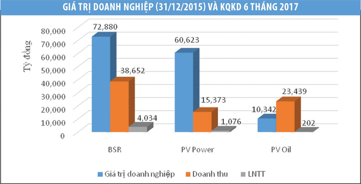 Cùng với BSR, một doanh nghiệp khác thuộc PVN cũng dự kiến IPO trong tháng 12/2017 là PV Power. Giá trị doanh nghiệp tại thời điểm 31/12/2015 được xác định là 60.623 tỷ đồng, vốn điều lệ 21.774 tỷ đồng, vốn chủ sở hữu 33.550 tỷ đồng.