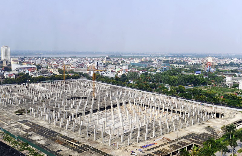 Tuy vậy nhưng sau 7 năm thi công, trung tâm thương mại vẫn chỉ là bãi công trường ngổn ngang với cột bê tông, sắt thép hoen gỉ