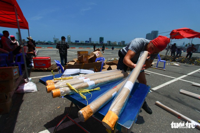 Trưa 27-4 tại bãi bắn trên khu vực cảng sông Hàn (Đà Nẵng), những thành viên hai đội pháo hoa Đà Nẵng - Việt Nam và Surex Firma Rodzinna - Ba Lan gấp rút thực hiện những công đoạn cuối cùng cho đêm bắn khai mạc Lễ hội pháo hoa quốc tế Đà Nẵng 2018 (DIFF 2018) ngày 30-4 sắp tới.