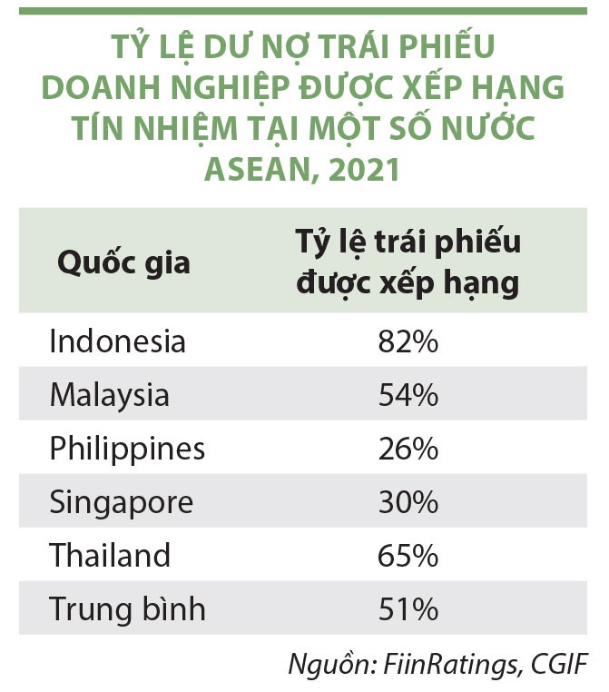 Do đó, tỷ lệ trái phiếu được xếp hạng tại Việt Nam gần như bằng 0, trong khi trung bình tỷ lệ này tại các nước Đông Nam Á là hơn 50% (xem bảng).