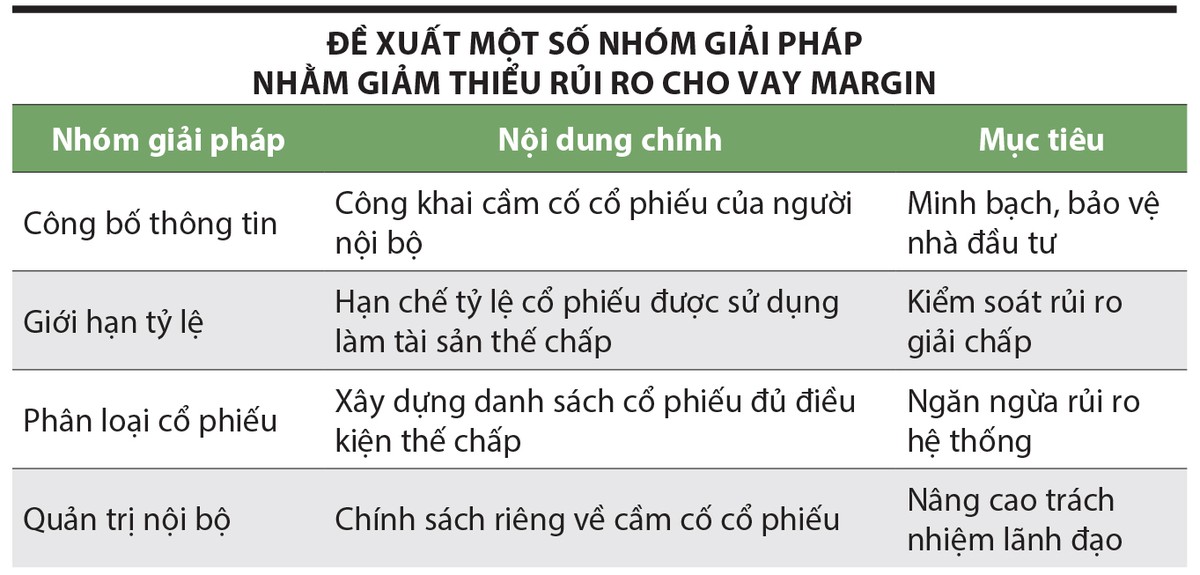 Thứ hai, xây dựng giới hạn tỷ lệ cổ phiếu do người nội bộ sở hữu được phép sử dụng làm tài sản thế chấp, giúp tránh rủi ro mất quyền kiểm soát doanh nghiệp và giảm nguy cơ bị giải chấp ồ ạt. Đồng thời, áp dụng tỷ lệ cho vay thận trọng hơn đối với các cổ phiếu này, tương tự như thông lệ của các thị trường phát triển.