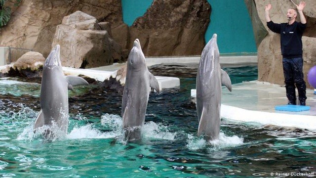 Màn biểu diễn của cá heo tại sở thú Duisburg, Đức