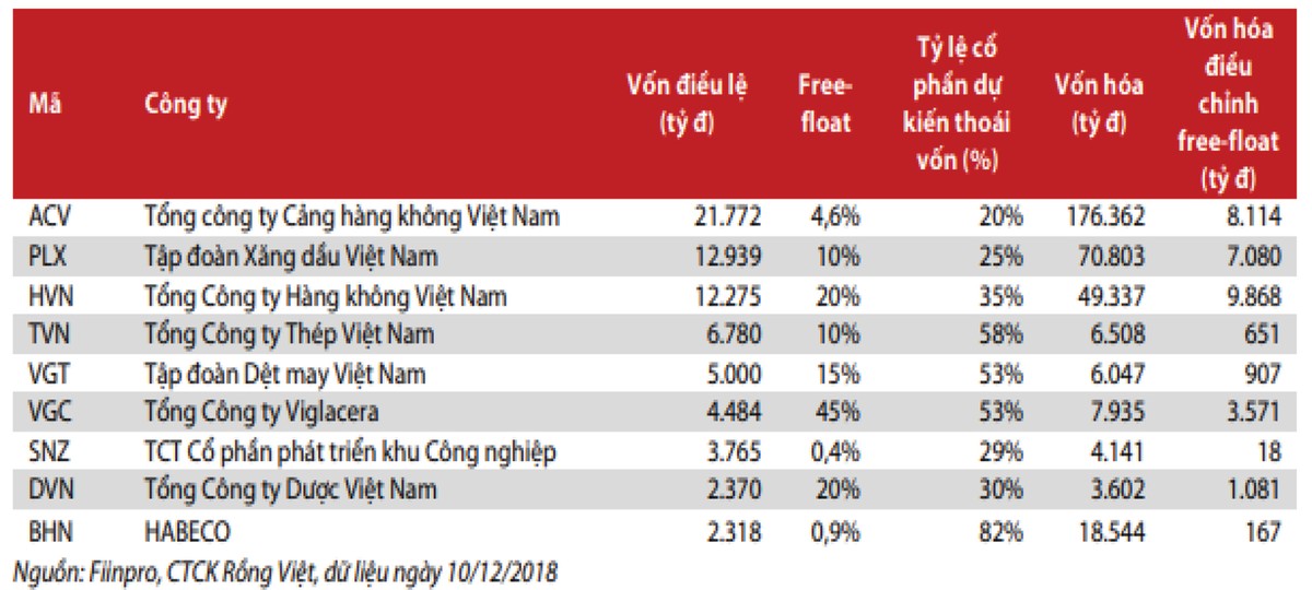 Thống kê của CTCP Chứng khoán Rồng Việt (VDSC) trong Báo cáo chiến lược năm 2019 cho thấy, tỷ lệ hoàn thành kế hoạch thoái vốn nhà nước tại các doanh nghiệp niêm yết/đăng ký giao dịch trên 3 sàn HOSE, HNX và UPCoM trong năm 2018 chỉ đạt 20%, với 18/98 công ty được thoái vốn, gây sức ép “dồn toa” sang năm 2019.