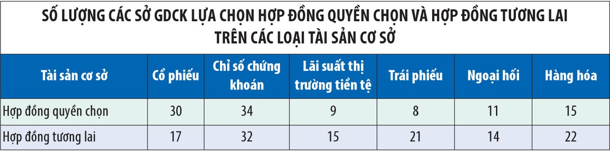 Trong số 52 Sở GDCK thành viên của WFE năm 2012, công cụ phái sinh trên chỉ số chứng khoán là loại sản phẩm được các Sở lựa chọn nhiều nhất, còn lại là các công cụ phái sinh trên cổ phiếu đơn lẻ, trái phiếu.