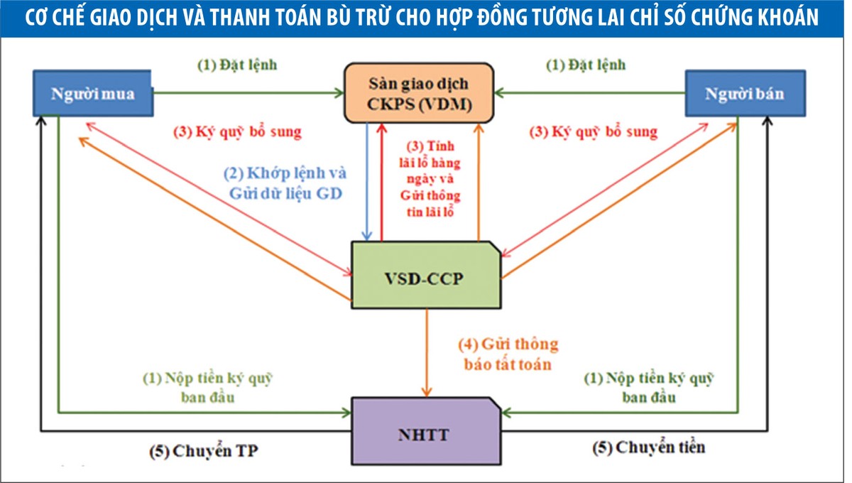 Cơ chế giao dịch và thanh toán bù trừ cho hợp đồng tương lai chỉ số chứng khoán (xem hình vẽ), trong đó: