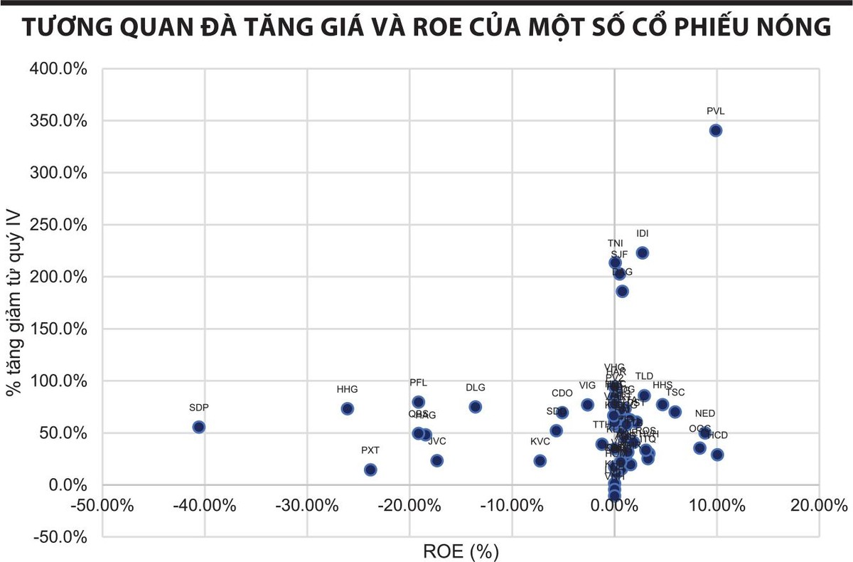 Trong một thị trường hưng phấn như hiện tại, đương nhiên các cổ phiếu dưới mệnh giá đều có những vấn đề của riêng mình. Có nhiều cái tên trong số đó từng "vang bóng một thời", nhưng trải qua những giai đoạn khó khăn giờ đây đang kiệt quệ về tài chính và hiệu quả kinh doanh rất bết bát. Trong mẫu thống kê, phần đông trong số này có kết quả kinh doanh lỗ và gần như không có cổ phiếu nào có ROE quá 10%.