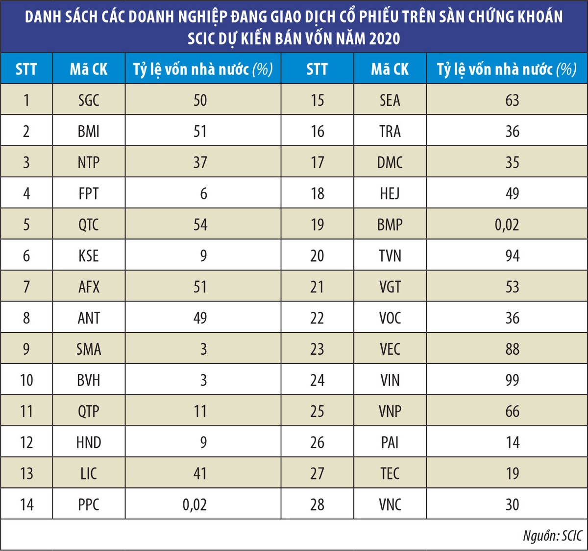 Năm 2020, SCIC dự kiến thoái vốn tại 85 doanh nghiệp, trong đó có 28 doanh nghiệp đang giao dịch cổ phiếu trên sàn chứng khoán.