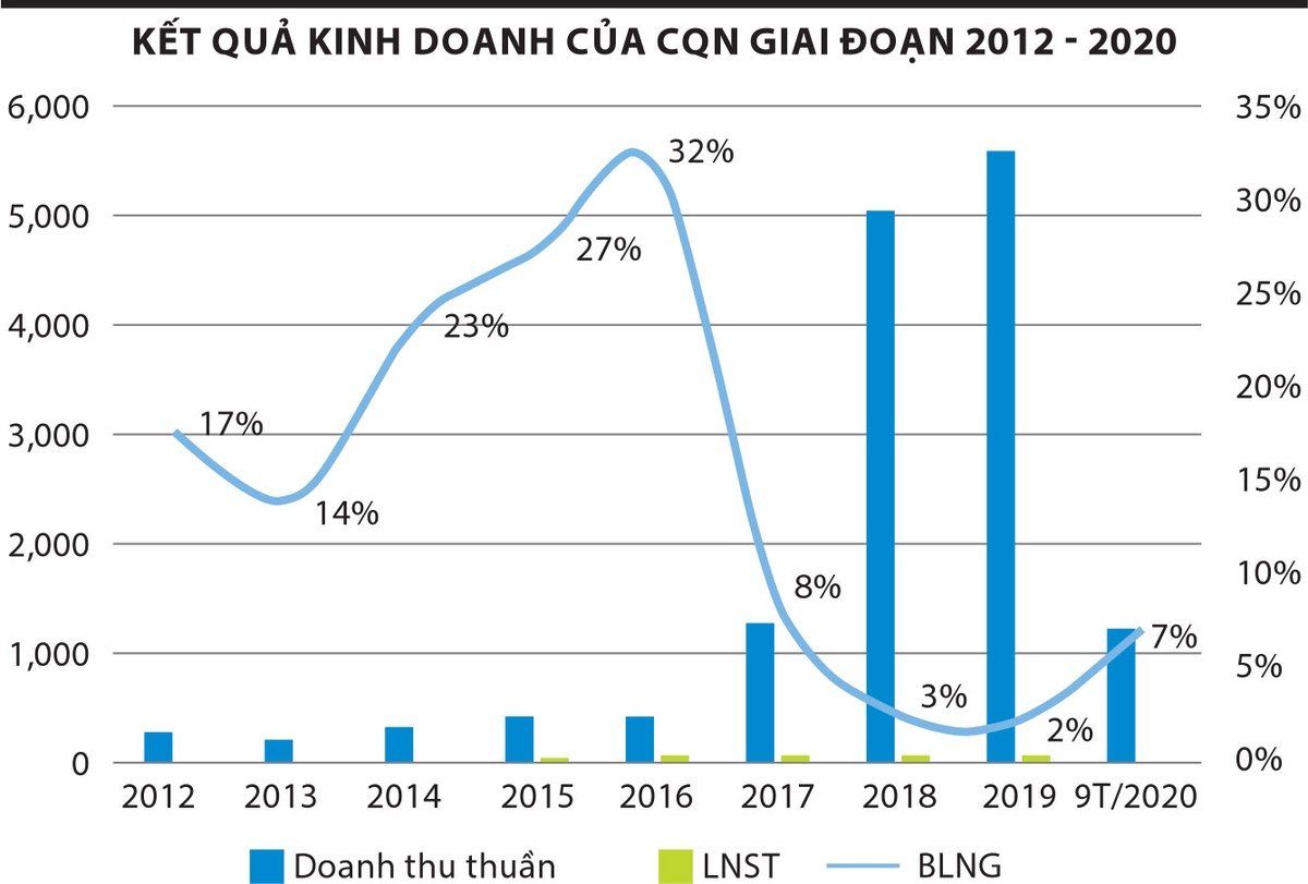 Tuy nhiên, 9 tháng đầu năm 2020, CQN đạt doanh thu 1.433 tỷ đồng, giảm 65%; lợi nhuận sau thuế gần 43 tỷ đồng, giảm 10% so với cùng kỳ năm ngoái.