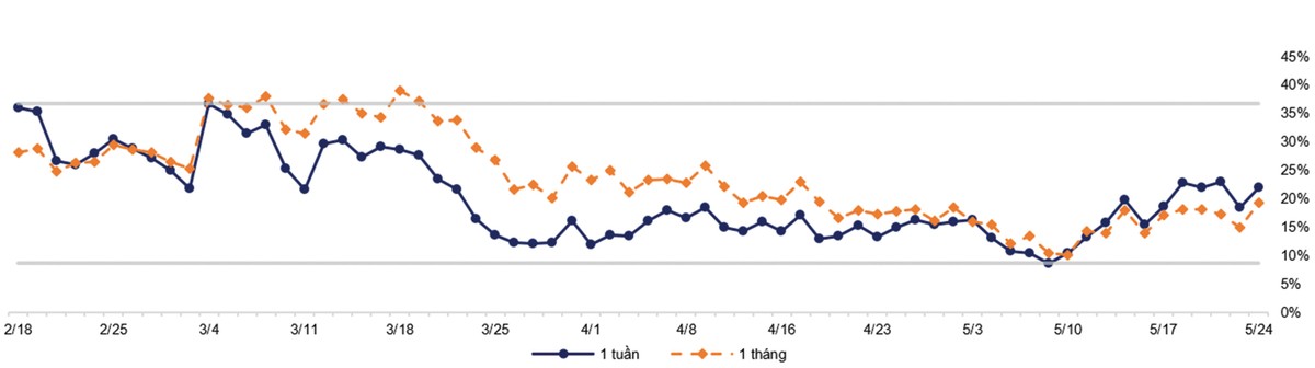 Trên thị trường chứng khoán phái sinh, lượng hợp đồng giữ thế qua đêm đạt kỷ lục hơn 38.000 hợp đồng và khối ngoại bán ròng kỷ lục hơn 4.000 hợp đồng chỉ trong 2 phiên. Khối ngoại cũng đẩy mạnh bán ròng khoảng 600 tỷ đồng trên thị trường cổ phiếu. Nhìn chung, góc nhìn của nhà đầu tư nước ngoài khá bi quan về triển vọng của thị trường chứng khoán Việt Nam trong 3 tuần gần đây.