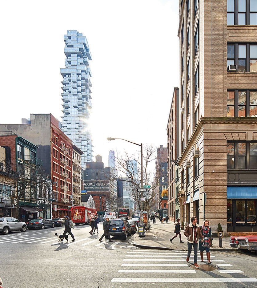 Trong bối cảnh này, Công ty kiến trúc Herzog & de Meuron đã nhận một bài toán khó khi tham gia dự án Cao ốc 56 Leonard Street và thậm chí còn thách thức chính mình với mục tiêu “kháng cự” những yếu tố kể trên, biến tòa nhà trở nên khác biệt với các tòa cao ốc còn lại.