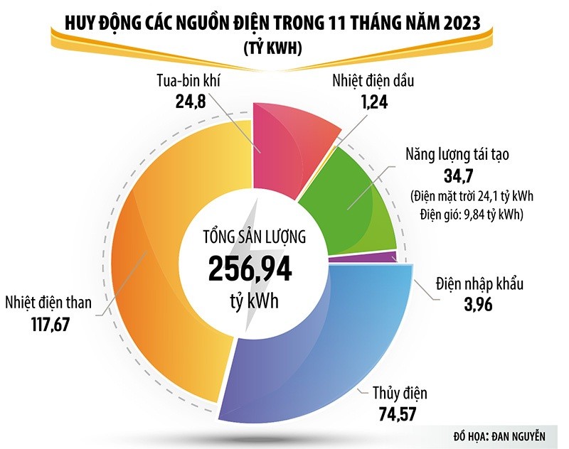 Các nguồn điện than, thủy điện và nguồn điện tua-bin khí vẫn đóng vai trò quan trọng trong việc đảm bảo cung cấp điện cho hệ thống điện quốc gia năm 2024. Các nguồn năng lượng tái tạo sẽ tiếp tục được huy động theo nhu cầu phụ tải điện và khả năng hấp thụ của lưới điện.