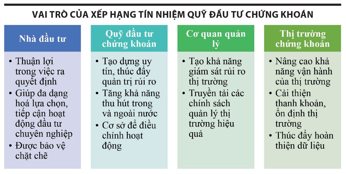 Xếp hạng quỹ đầu tư chứng khoán là một cấu phần quan trọng trong việc hoàn thiện hạ tầng thông tin của thị trường vốn, góp phần chuẩn hóa cách đánh giá hiệu quả và rủi ro của các quỹ, nâng cao tính minh bạch, đồng thời tạo lập niềm tin cho nhà đầu tư.