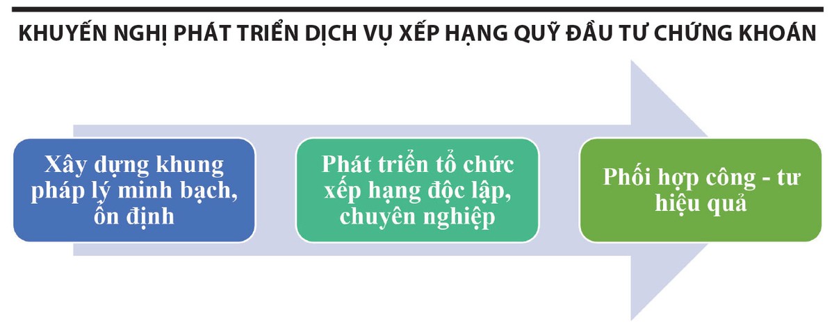 Đối với Việt Nam, việc phát triển dịch vụ xếp hạng quỹ đầu tư chứng khoán cần được triển khai phù hợp với thông lệ quốc tế nhưng điều chỉnh theo đặc thù quy mô và dữ liệu trong nước. Hệ thống nên được xây dựng trên bộ tiêu chí đa chiều gồm hiệu quả tích lũy, hiệu quả điều chỉnh rủi ro, mức biến động, độ ổn định danh mục và kỷ luật chi phí quản lý. Quá trình đánh giá cần được thực hiện độc lập, công bố công khai và cho phép các công ty quản lý quỹ phản hồi dữ liệu.