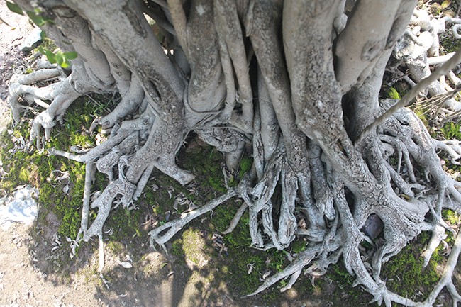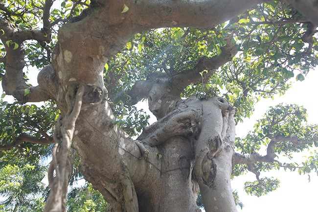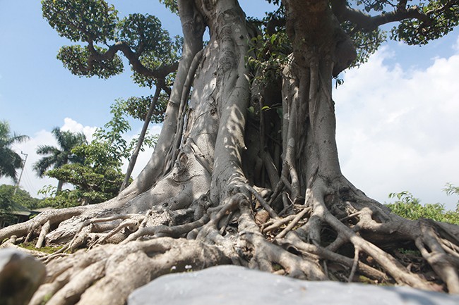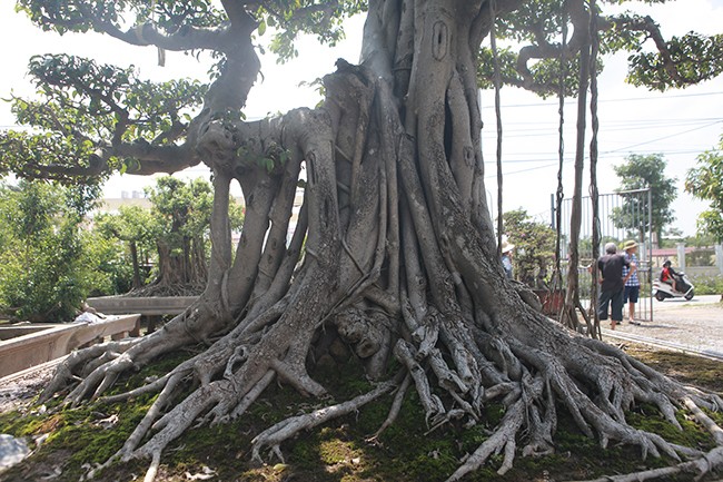 Trải qua năm tháng, nhiều rễ thân, rễ phụ đã gắn chặt vào nhau tạo thành một khối vững chãi. Bộ rễ mốc thếch chứng tỏ cây nhiều năm tuổi.