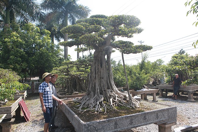 Cây sanh có tuổi đời khoảng 70 năm, cao 2,5m, đường kính gốc 2,2m, chiều dài bông tán hơn 2m.